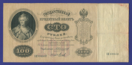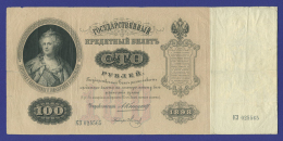 В нашем интернет-магазине BONUMAN вы можете купить банкноту Николая II выпущенную в 1898 году, номиналом 100 рублей. Краткая сводка характеристик банкноты: Период: Николай II Номинал: 100 рублей Год: 1898 Управляющий: С. И. Тимашев Кассир: Брут Качество: VF-