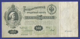 В нашем интернет-магазине BONUMAN вы можете купить банкноту Николая II выпущенную в 1898 году, номиналом 500 рублей. Краткая сводка характеристик банкноты: Период: Николай II Номинал: 500 рублей Год: 1898 Управляющий: А. В. Коншин Кассир: Чихиржин Качество: F-VF