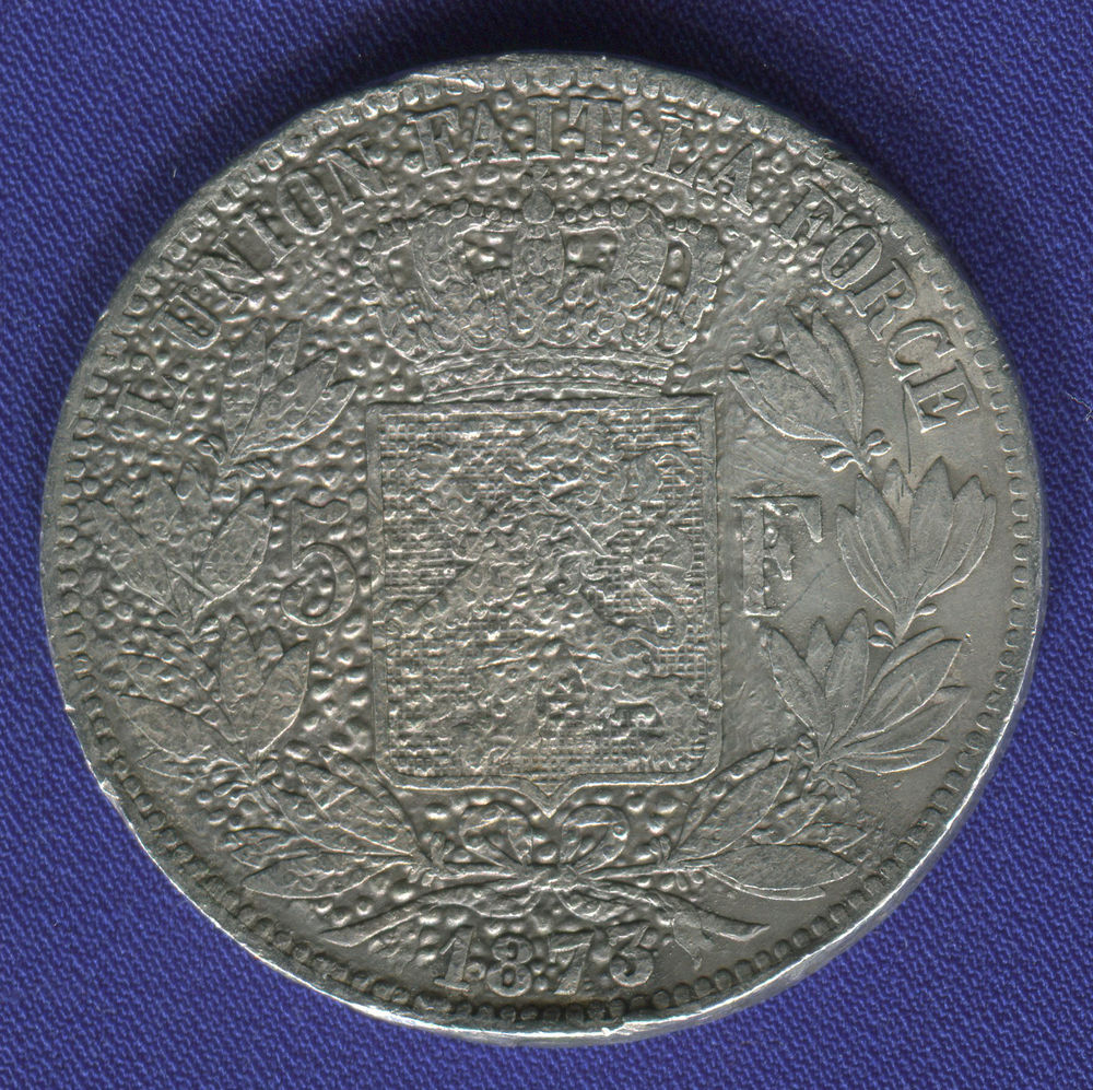 В нашем интернет-магазине BONUMAN вы можете купить монету выпущенную в 1873 году, номиналом 5 франков. Место выпуска: Бельгия.