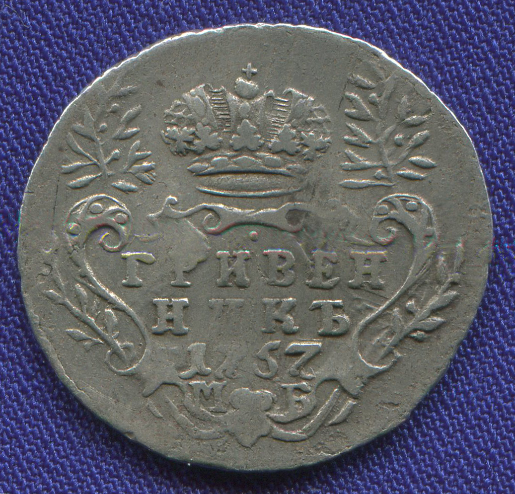 Интернет-магазин BONUMAN представляет монету Елизаветы Петровны выпущенную в 1757 году, номиналом Гривенник.