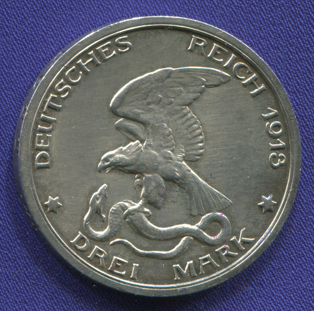 В нашем интернет-магазине BONUMAN вы можете купить монету выпущенную в 1913 году, номиналом 3 марки. Место выпуска: Германия/Пруссия.