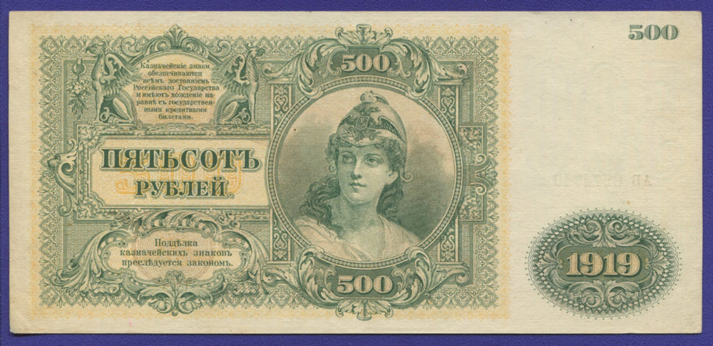 В нашем интернет-магазине BONUMAN вы можете купить банкноту Гражданской войны (Юга России) выпущенную в 1919 году, номиналом 500 рублей.
