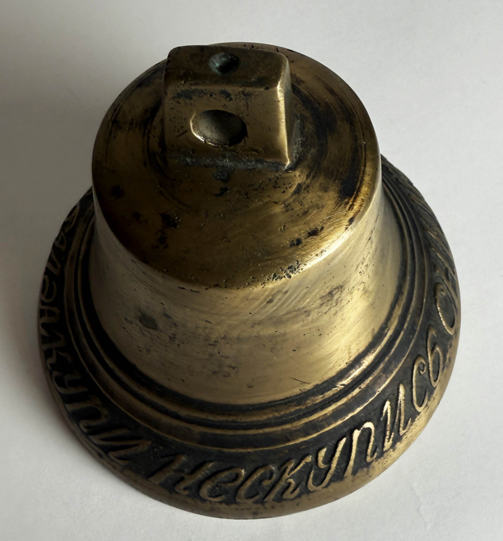Колокол 19 в. с надписью "Купи не скупись с ним езди веселись"