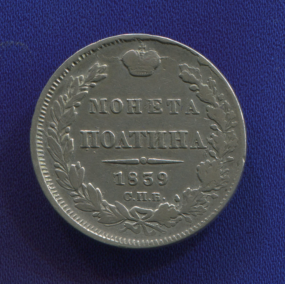 Интернет-магазин BONUMAN представляет монету Николая I выпущенную в 1839 году, номиналом Полтина.