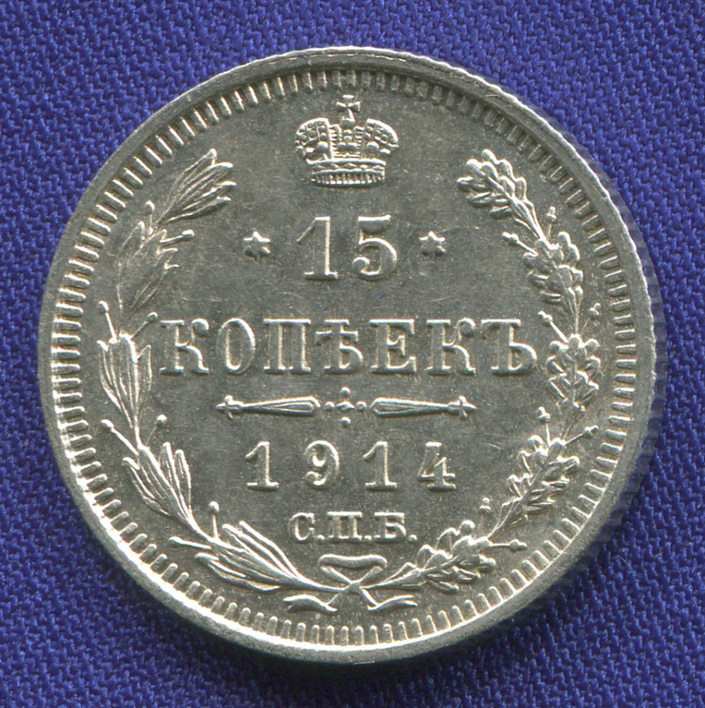 Интернет-магазин BONUMAN представляет монету Николая II выпущенную в 1914 году, номиналом 15 копеек.