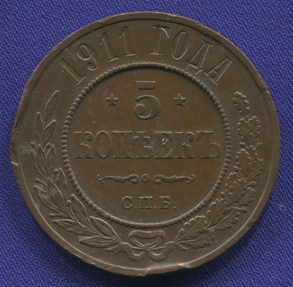 Интернет-магазин BONUMAN представляет монету Николая II выпущенную в 1911 году, номиналом 5 копеек.