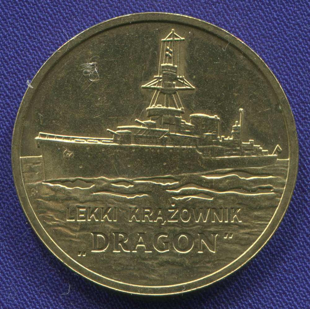 Монета сделана из металла: Латунь. Так же у монеты имеется особенность: Легкий крейсер "Дракон".. С учетом текущего состояния монеты, степень сохранности соответствует значению: UNC.