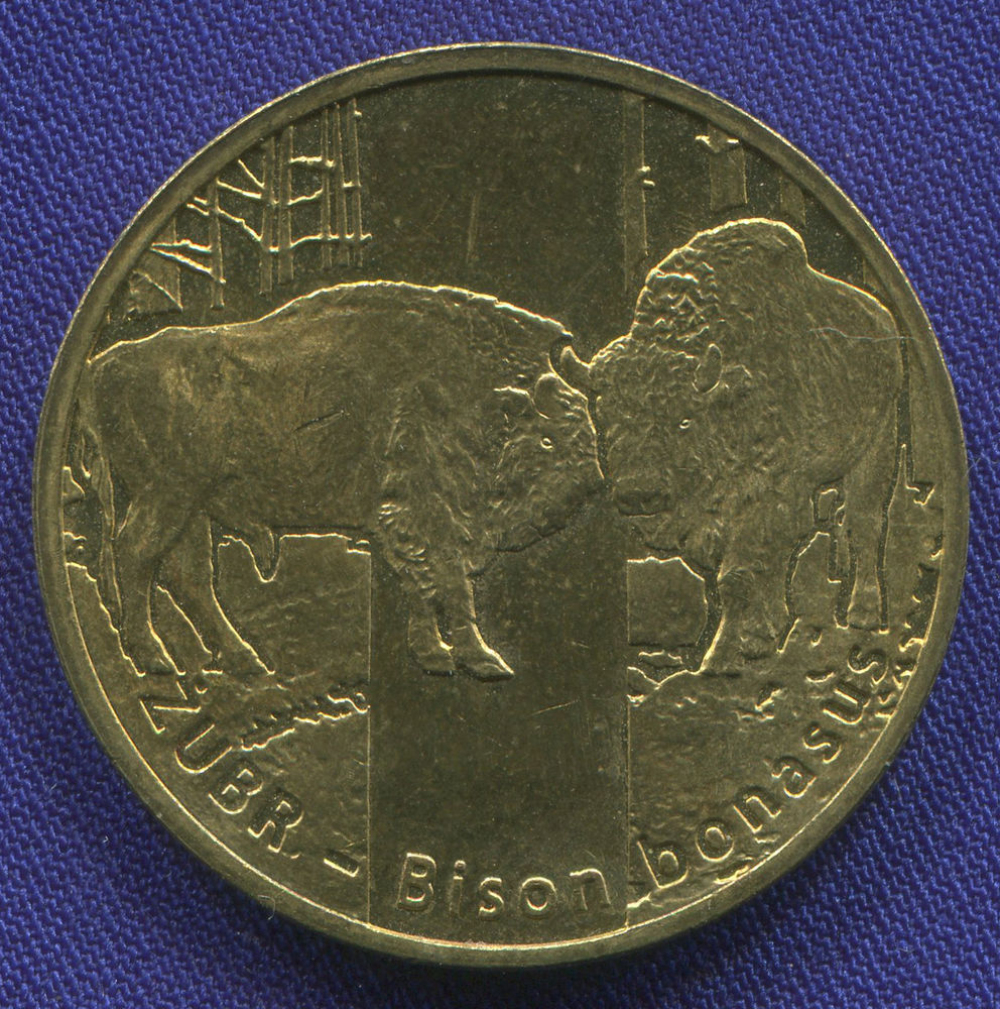 Монета сделана из металла: Латунь. Так же у монеты имеется особенность: Зубры.. С учетом текущего состояния монеты, степень сохранности соответствует значению: UNC.
