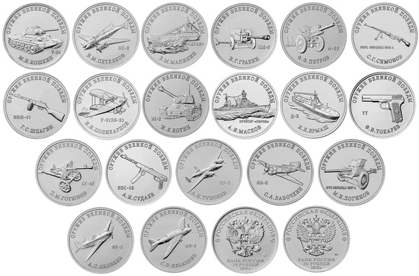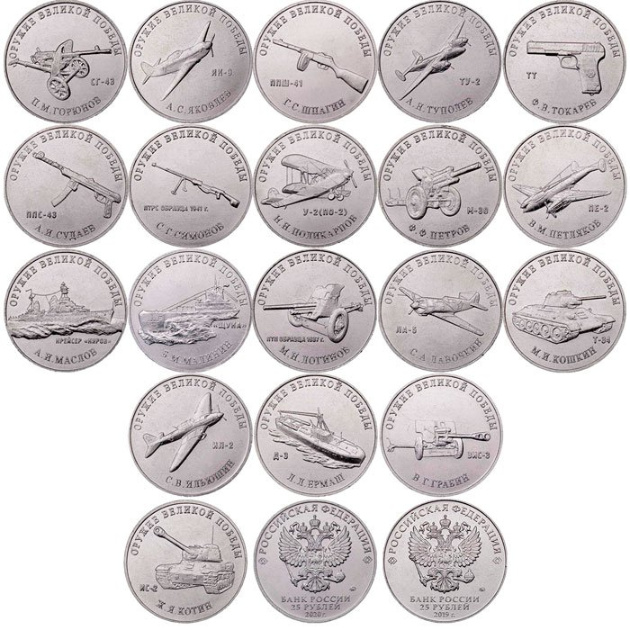 - Тематика монет: Оружие Великой Победы (конструкторы оружия)