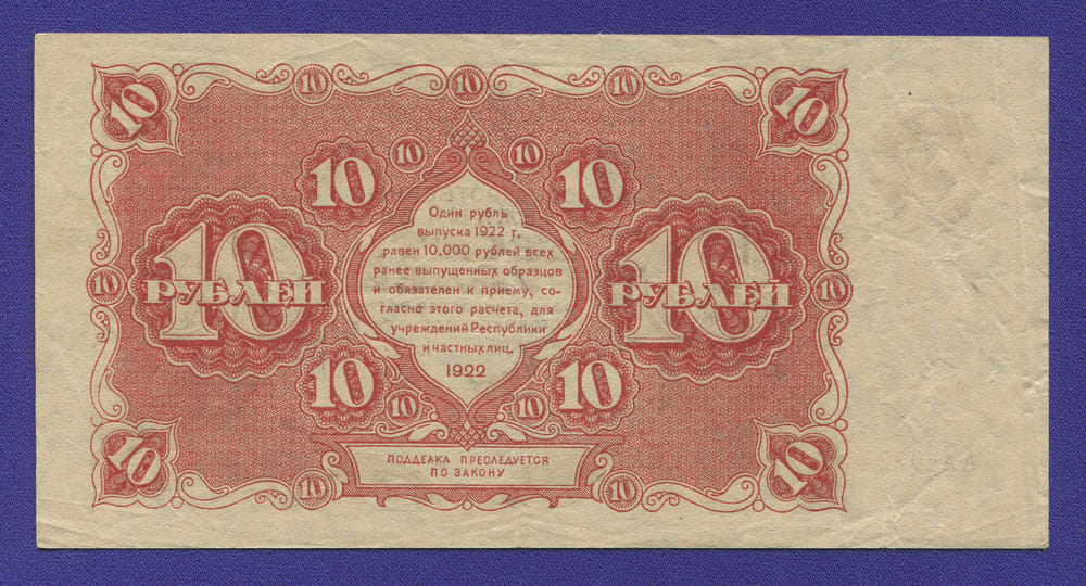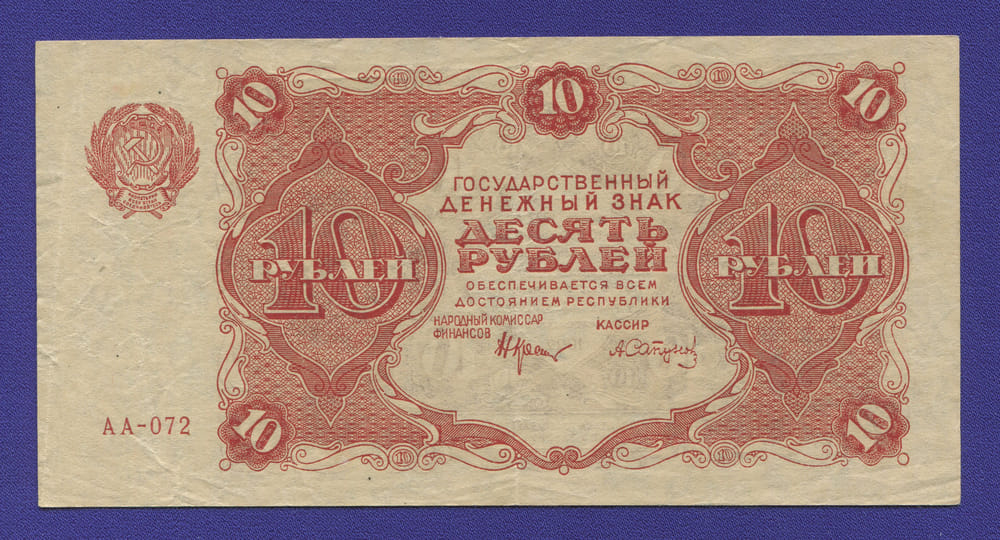 В нашем интернет-магазине BONUMAN вы можете купить банкноту Советского правительства выпущенную в 1922 году, номиналом 10 рублей.