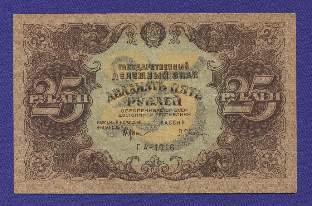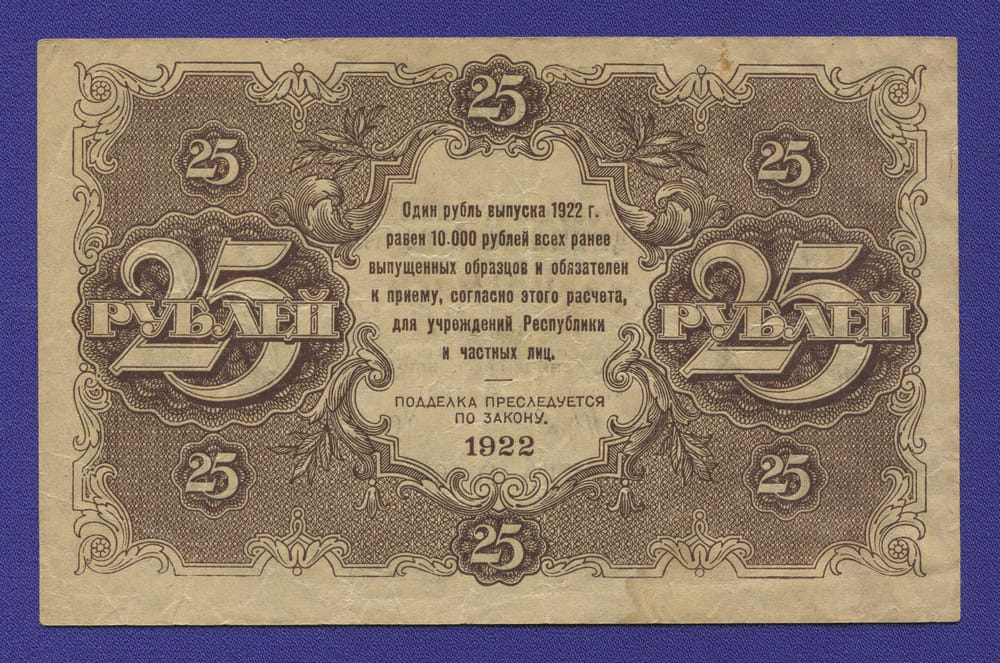 В нашем интернет-магазине BONUMAN вы можете купить банкноту Советского правительства выпущенную в 1922 году, номиналом 25 рублей.