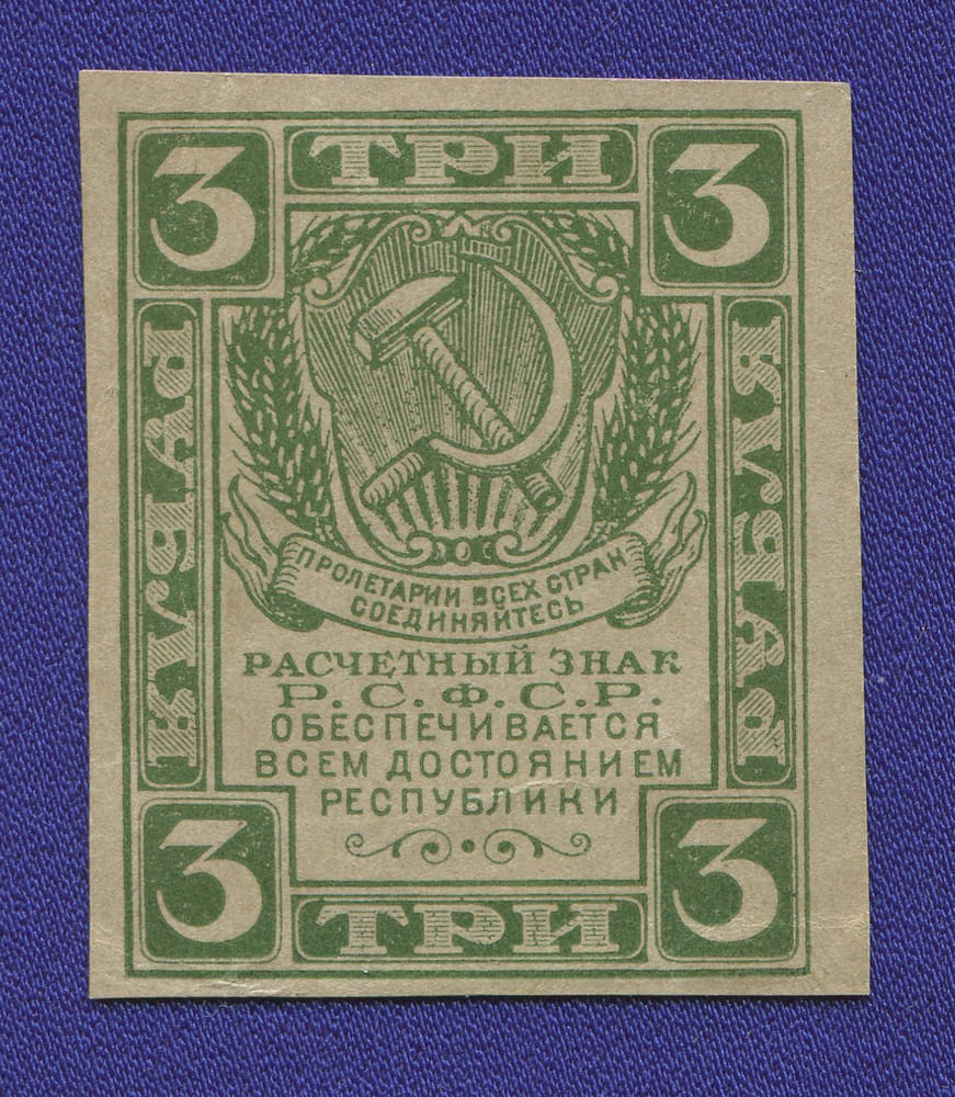 В нашем интернет-магазине BONUMAN вы можете купить банкноту Советского правительства выпущенную в 1920 году, номиналом 3 рубля.