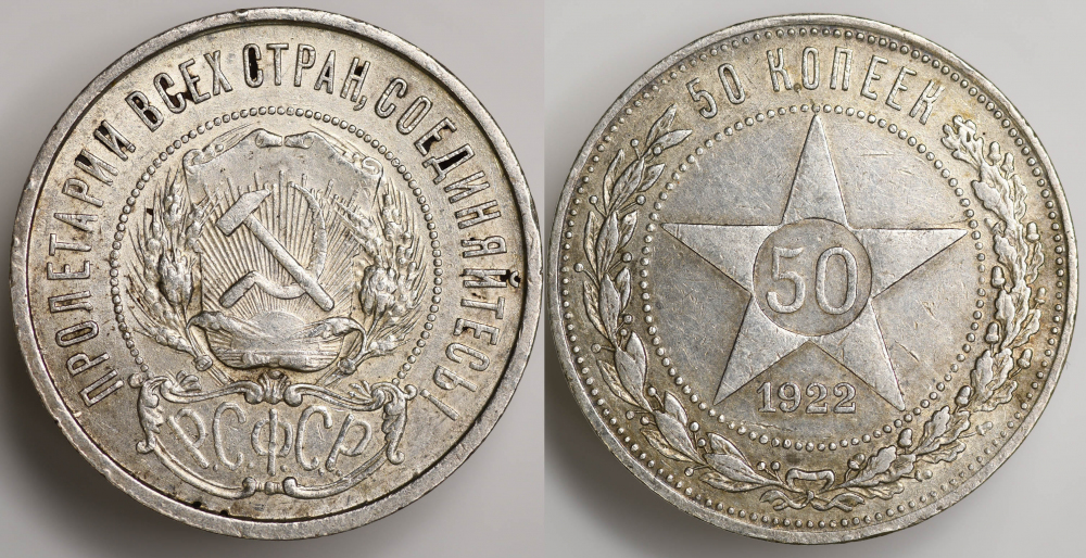 В нашем интернет-магазине BONUMAN вы можете купить монету выпущенную в РСФСР в 1922 году, номиналом 50 копеек, cо знаками минцмейстера АГ.