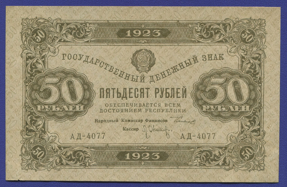 В нашем интернет-магазине BONUMAN вы можете купить банкноту Советского правительства выпущенную в 1923 году, номиналом 50 рублей.