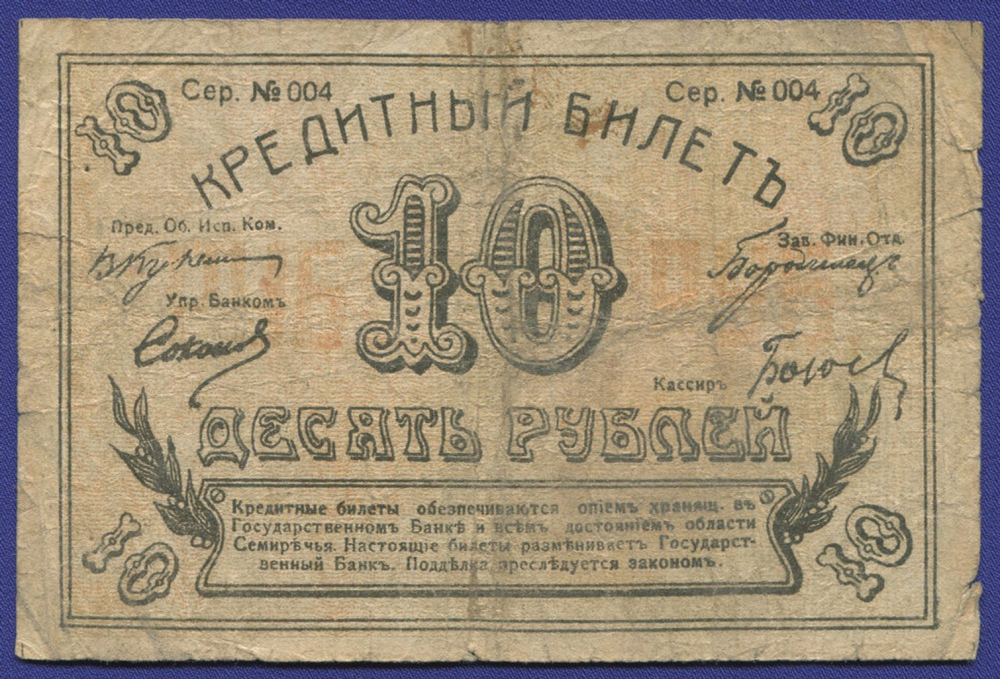 В нашем интернет-магазине BONUMAN вы можете купить банкноту Семиречья выпущенную в 1918 году, номиналом 10 рублей.