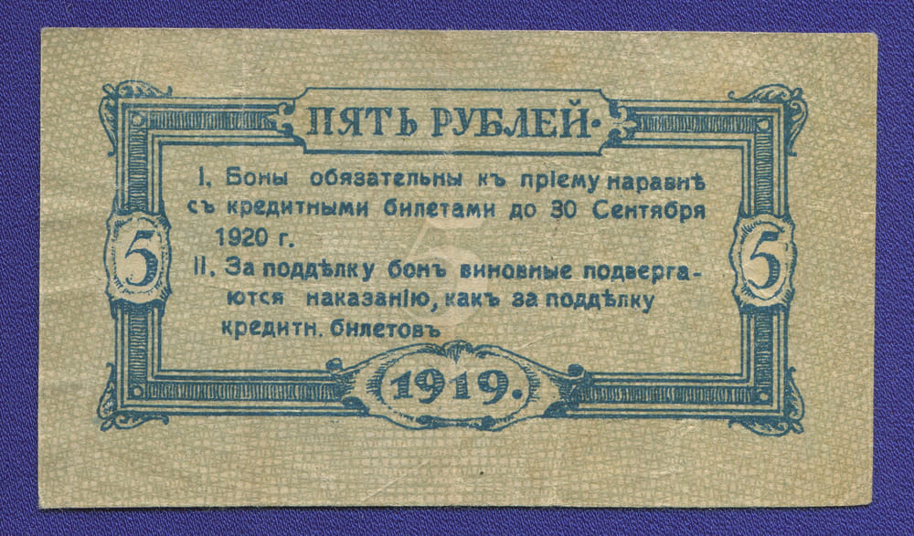 В нашем интернет-магазине BONUMAN вы можете купить банкноту выпущенную в 1919 году, номиналом 5 рублей.