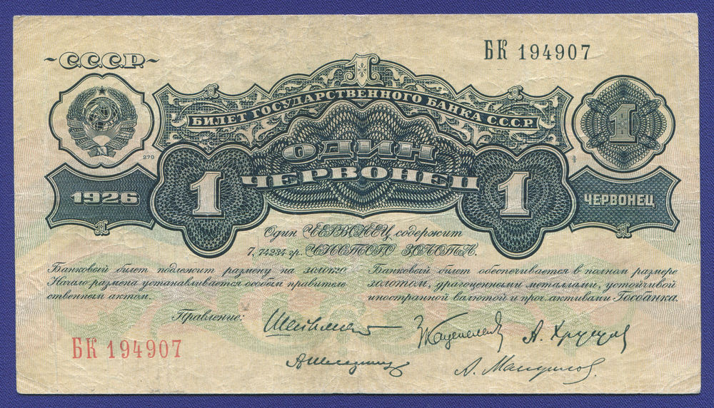 В нашем интернет-магазине BONUMAN вы можете купить банкноту СССР выпущенную в 1926 году, номиналом 1 червонец.