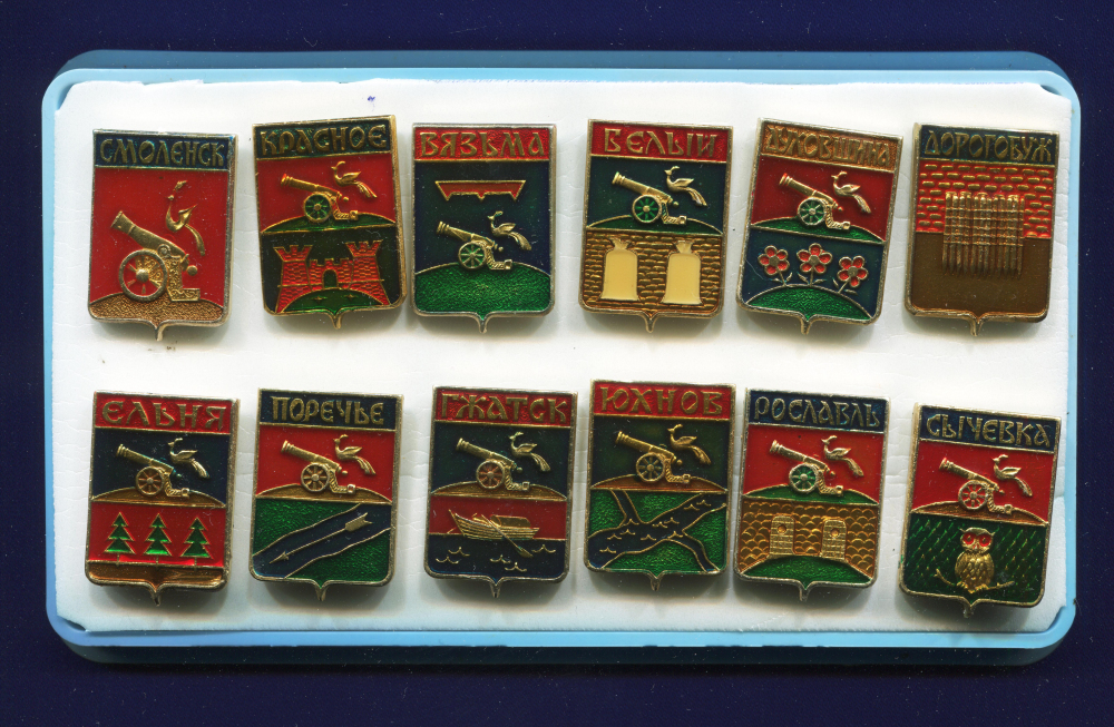 Сувенирный набор значков № 20" Гербы Смоленской области"