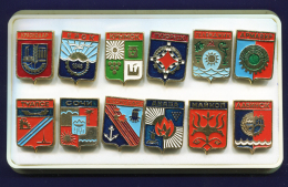 Сувенирный набор значков № 2 " Гербы Смоленской области" Смоленский авиационный завод 1981 г.