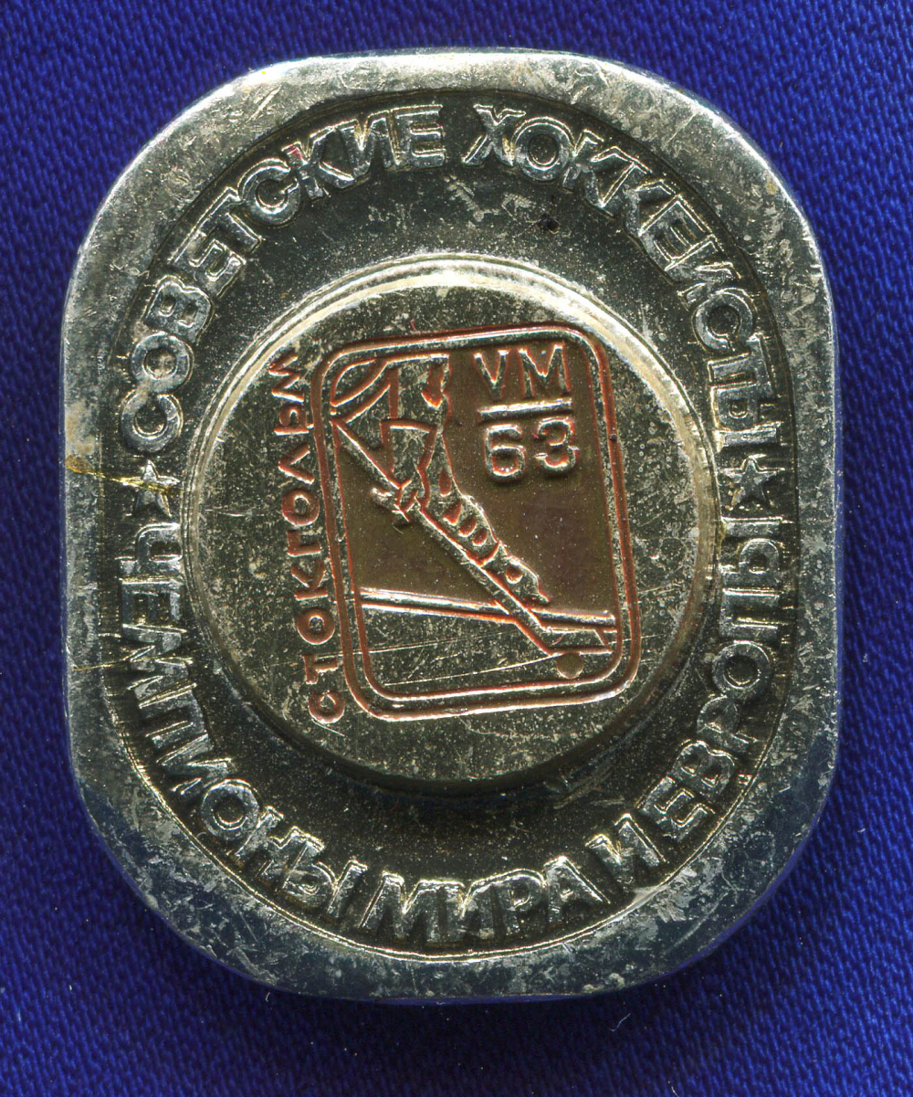 Значок «Советские хоккеисты чемпионы мира и европы Стокгольм» Алюминий Булавка