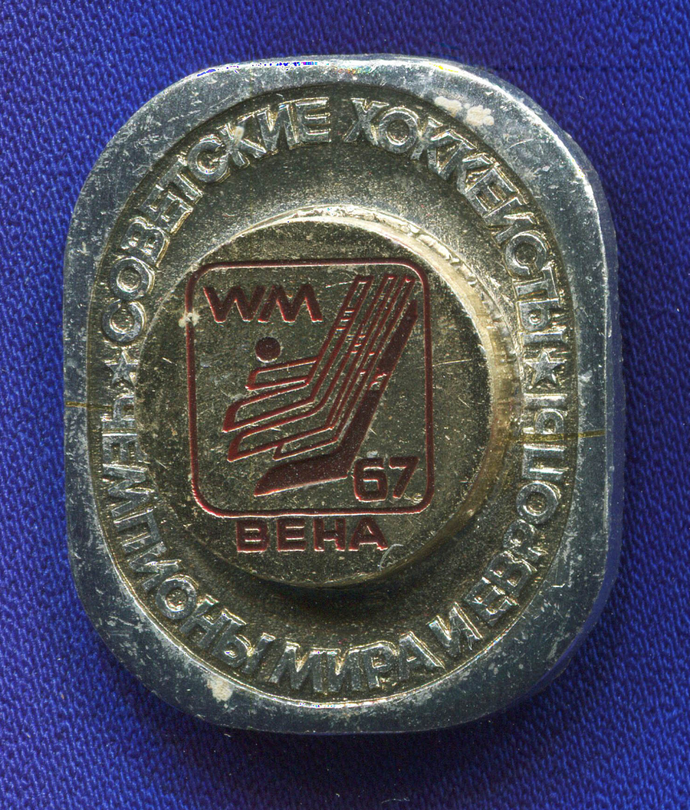 Значок «Советские хоккеисты чемпионы мира и европы Вена» Алюминий Булавка